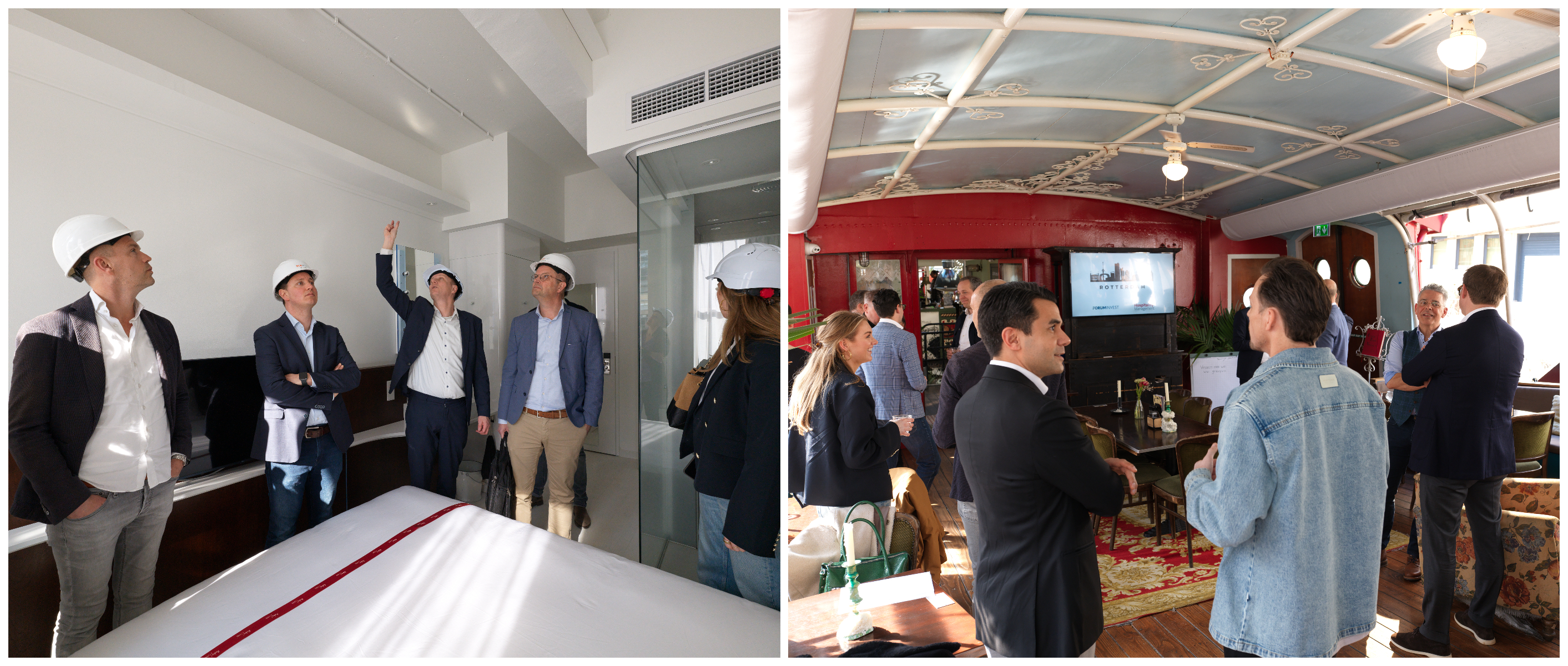 De bijeenkomst vond plaats bij Vessel 11, een in het oog springende locatie in de Rotterdamse Wijnhaven. Vanuit daar vertrok de groep voor een rondleiding naar het Ruby hotel dat momenteel in aanbouw is aan de Glashaven. Het project is volop in ontwikkeling en laat in de praktijk zien hoe een bestaand kantoorgebouw wordt omgevormd tot hotel.