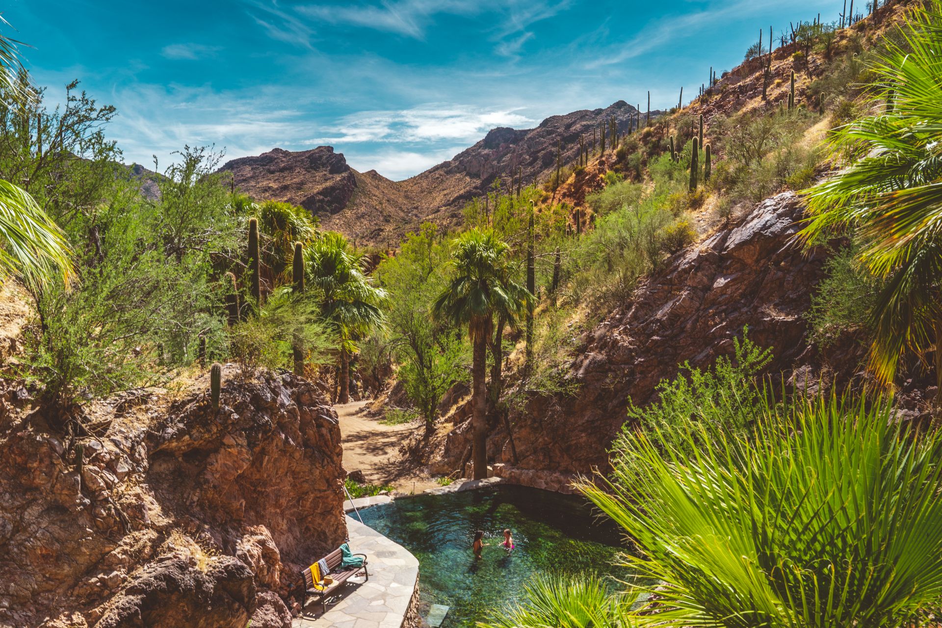 In de Sonorawoestijn ligt Castle Hot Springs, een historische wellnessbestemming uit de late negentiende eeuw die zorgvuldig werd gerestaureerd. Het resort combineert modern comfort met een rijke geschiedenis en wordt omgeven door palmen, tuinen en spectaculaire woestijnlandschappen.
